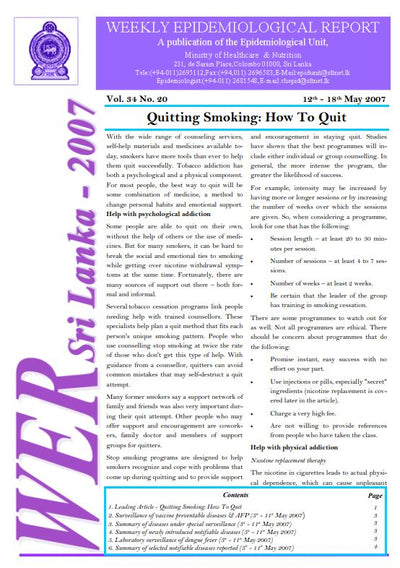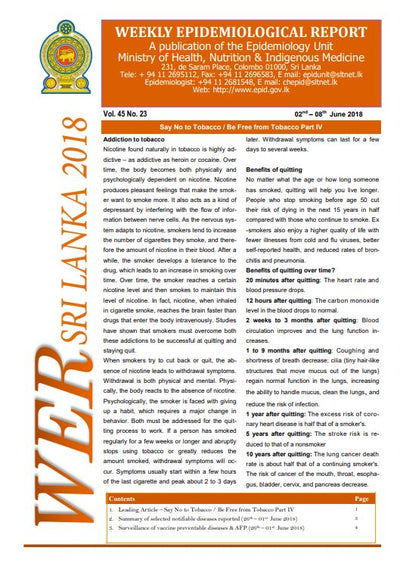 A publication of the Epidemiology Unit Ministry of Health, Nutrition & Indigenous Medicine